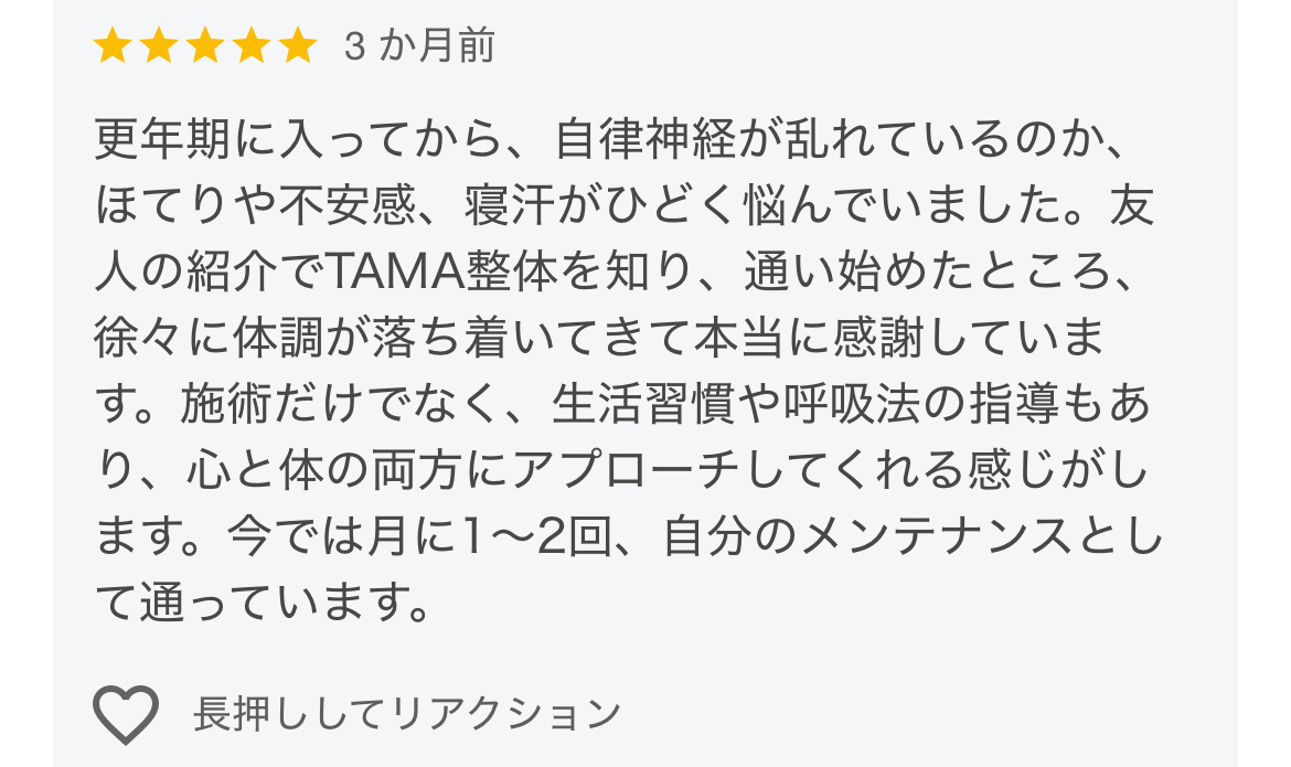 新宿、下北沢TAMA 自律神経専門整体
